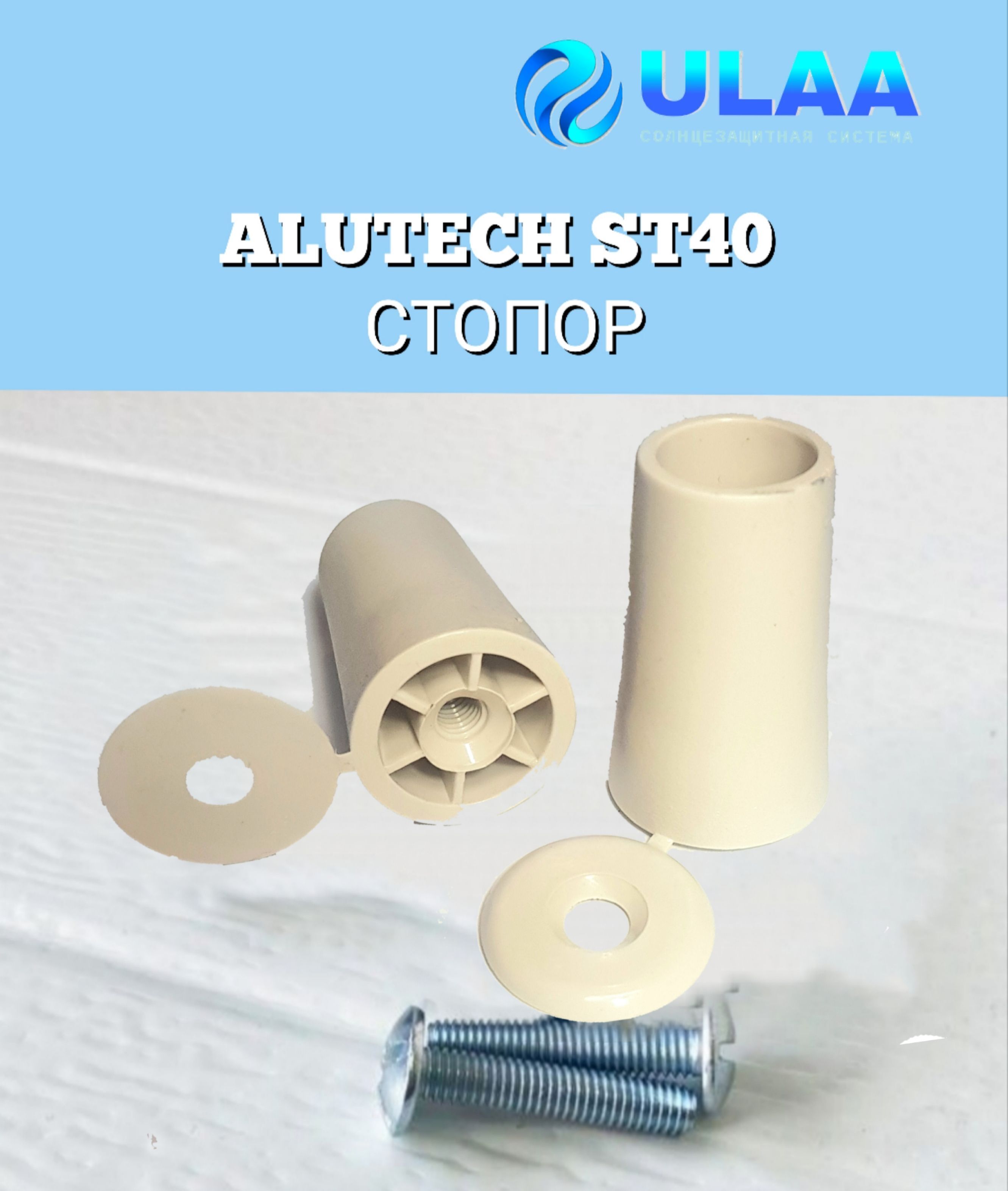ALUTECH ST40: Стопор ST40 Стопор ST40 - полиэтиленовый стопор длиной 40мм. Применяется для ограничения высоты подъема полотна роллеты с ручным управлением. Идет в комплекте с винтом. Цвет серый