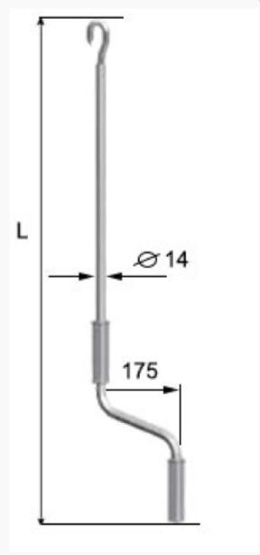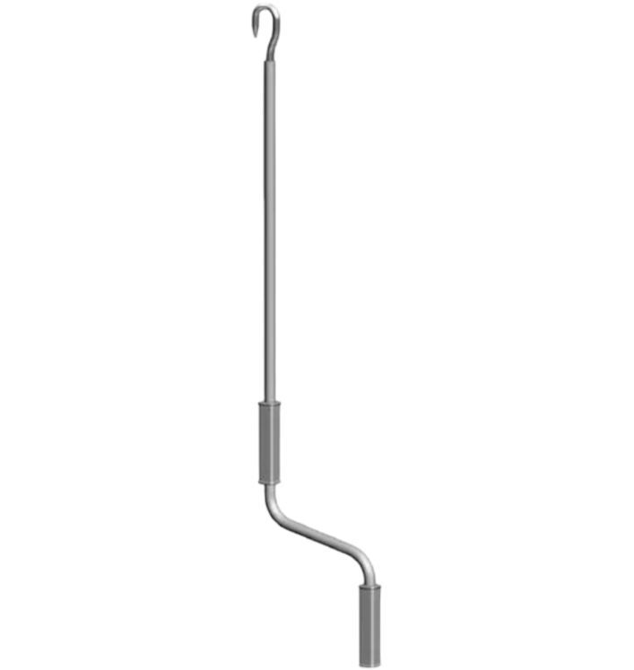 Приводной вороток с крючком, длиной полтора метра, для аварийного ручного управления конструкцией с помощью кардана и редуктора, встроенного в электропривод.