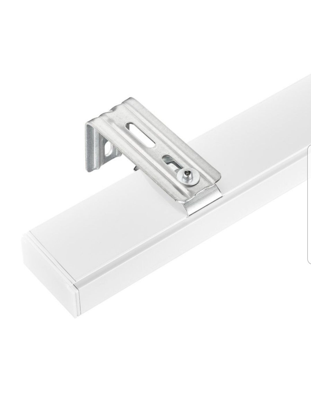 Кронштейн Г-образный, формованный с ребром жесткости имеет два отверстия для крепления к стене, одно из них продолговатое позволяет корректировать положение крепежа на поверхности стены. А так же три отверстия для крепления потолочного кронштейна (защелки), они тоже удлиненные и позволяют регулировать расстояние карниза от стены.