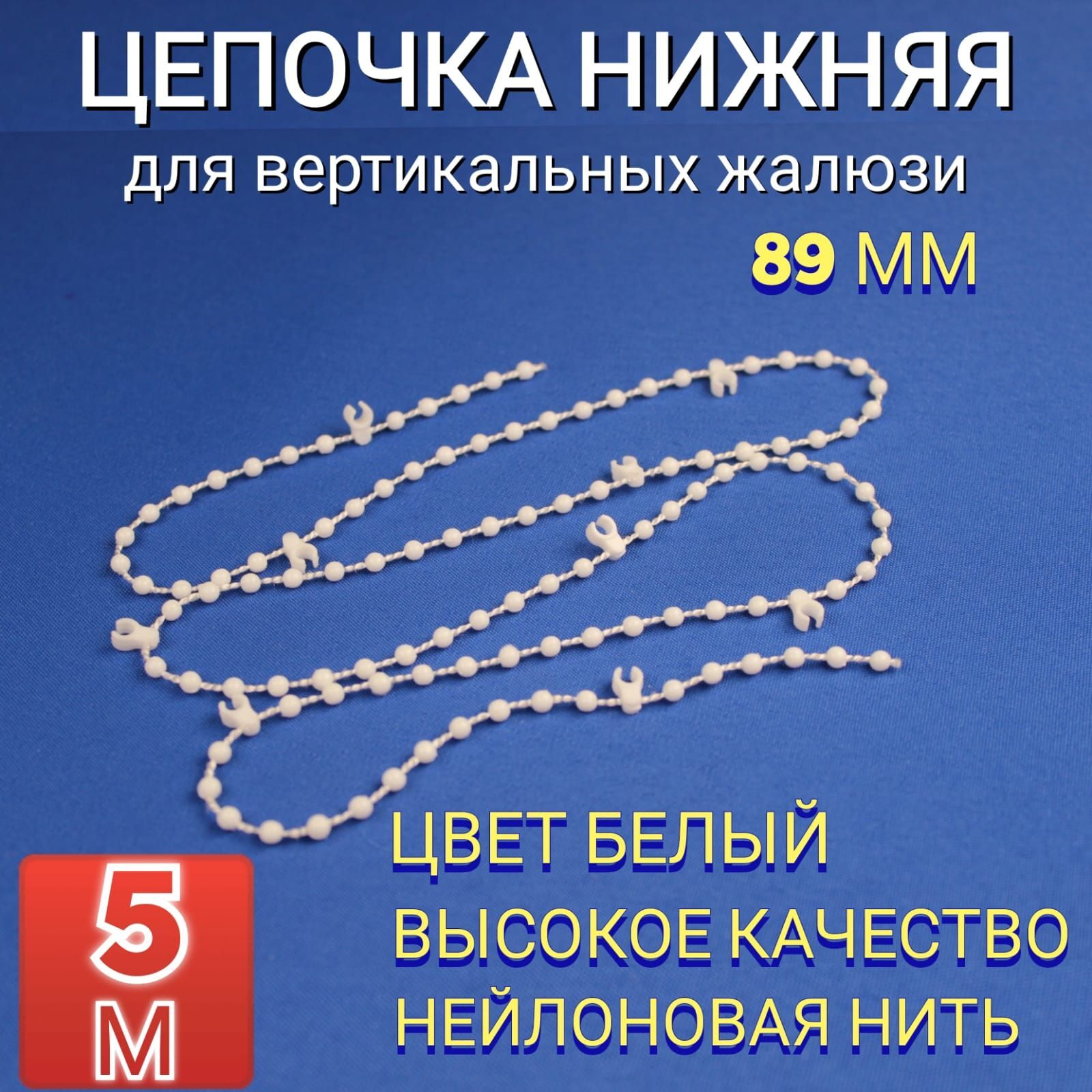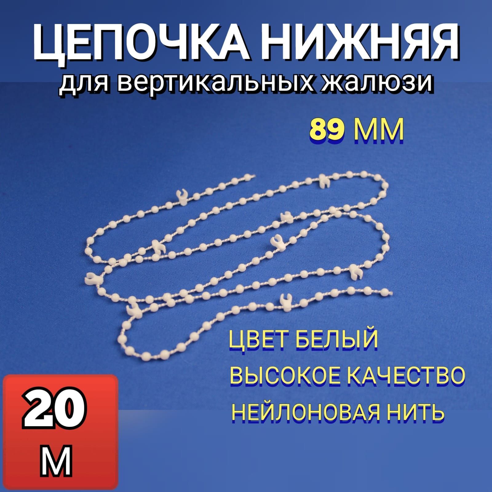Цепь нижняя дистанционная пластиковая используется для соединения нижних грузиков ламелей вертикальных жалюзи, с шириной ламели 89 мм.